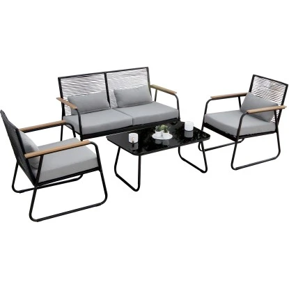 Das Gestell der Acamp Paxos Lounge ist aus Stahlrohr pulverbeschichtet ud bietet einen optimalen Rostschutz durch wetterfestes elektrolytisches Beschichtungsverfahren. Die Armlehnen bestehen aus Polywood, Sitz- und Rückenfläche sind mit rundem FlexMesh-Polyrattan umwickelt. Die Sitz- und Rückenkissen aus hochwertigem Polyester mit Schaum-/Vliesfüllung sind mit Reißverschluss und somit leicht zu reinigen. Die Lounge bietet einen sehr guten Sitzkomfort und die Tischplatte besteht aus schwarzem Sicherheitsglas.