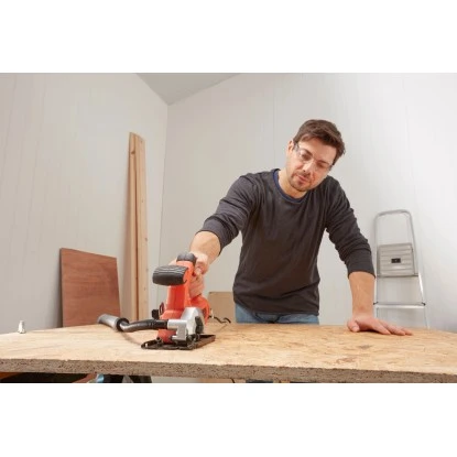 Die Black+Decker Kompakt-HandkreissĂ€ge BES510 ist eine vielseitige und sehr kompakte KreissĂ€ge. Sie schneidet problemlos Holz, Metall, Kunststoff, Fliesen, Kupferrohre und BodenbelĂ€ge. Dabei sorgt der 400 W-Motor fĂŒr einen schnellen SĂ€gefortschritt und eine hohe SchnittqualitĂ€t. Ausgestattet mit einem Aluminium-Druckguss-SĂ€geschuh und einer Metallschutzhaube garantiert sie eine hohe StabilitĂ€t und eine lange Haltbarkeit.