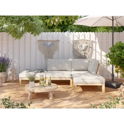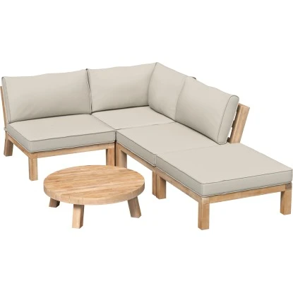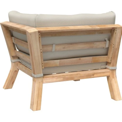 Die Maße des Ecksessels betragen 69,5 cm x 88,5 cm x 88,5 cm (H x B x T). Hergestellt aus hochwertigem FSC®-zertifiziertem Akazienholz, zeichnet er sich durch eine langlebige und robuste Qualität aus. Als weiteres Ausstattungsmerkmal verfügt der Sessel über eine dekorative Auflage in Taupe, womit er Ihnen einen entspannten Sitzkomfort ermöglicht.