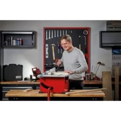Die Einhell Tischkreissäge TC-TS 210 ist ein kraftvolles Werkzeug, mit dem der ambitionierte Heimwerker mühelos und präzise Bau- und Hobbymaterial wie Massivholz, Holzwerkstoff- und Faserplatten sowie beschichtete oder furnierte Hölzer schneiden und verarbeiten kann. Die Tischkreissäge arbeitet mit einer maximalen Leistung von 1.200 W und einer Leerlaufdrehzahl von 4.800/min (Umdrehungen). Der Arbeitstisch mit einer Grundfläche von 525 mm x 440 mm ist mit der entsprechende Größe für ein angenehmes Arbeiten ausgelegt. Zusätzlich ist der Arbeitstisch mit einer übersichtlichen Skala ausgestattet. Das Sägeblatt ist stufenlos höhenverstellbar, Schnitte können bequem und stufenlos im Winkel von 45 Grad bis zu 90 Grad für saubere Gehrungsschnitte eingestellt werden. Die maximale Schnitthöhe beträgt bei 45 Grad 27 mm, bei 90 Grad 45 mm.