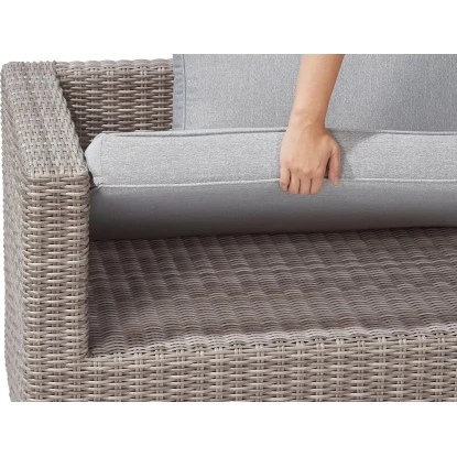 Das 5-teilige Greemotion Gartenmöbel Lounge-Set Olea lädt zum Entspannen auf Ihrer Terrasse oder in Ihrem Garten ein. Aufgrund des natürlichen Designs der grauen Rattan-Flechtoptik in Kombination mit den hellen Kissen ist die Sitzgruppe ein absoluter Hingucker für Ihren Außenbereich.
