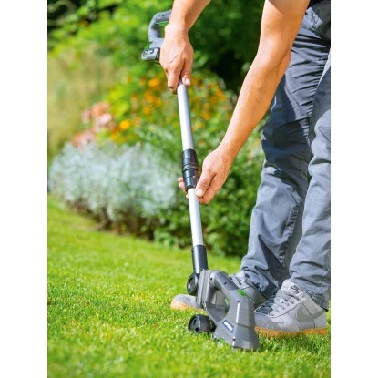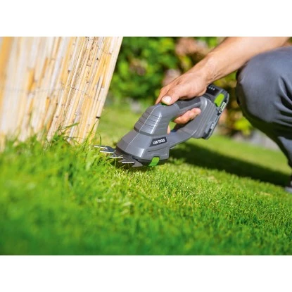 Leistungsstarke Grasschere für sauberen Kantenschnitt mit werkzeuglosem Wechsel von Gras- zur Strauchschere. Lasergeschliffenen Klingen ermöglichen ein präzises Zuschneiden von Sträuchern und Rasenkanten.