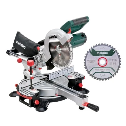 Das Metabo Zug- und Kappsägen-Set KGS 216 M wird inklusive zwei Hartmetall-Sägeblättern geliefert. Die leistungsstarke Kappsäge mit einem 1.200 W Motor ermöglicht die vielfältige Bearbeitung verschiedener Materialien. Die Nennaufnahmeleistung S6 (20%) beträgt 1.500 W.