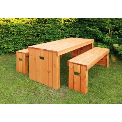Diese moderne Sitz-Garnitur „Rotterdam“ aus FSC-zertifizierten Nadelholz ist bereits werkseitig in einem honigbraunen Farbton wetterfest imprĂ€gniert. Die beiden jeweils 162cm breiten SitzbĂ€nke bieten insgesamt min. 6 Personen ausreichend Platz zum bequemen Verweilen und können einfach unter dem Tisch platzsparend verstaut werden. MaĂe BĂ€nke: B 162 x T 35 x H 47 cm. MaĂe Tisch: B 180 x T 75 x H 74 cm. Gewicht ohne Verpackung: 86 kg