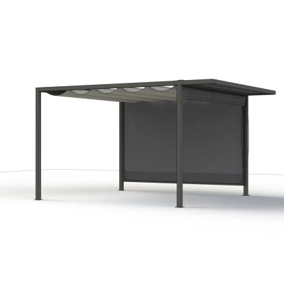 Das Siena Garden Roll-Up für die Schattenmanufaktur misst 300 cm x 210 cm und besteht aus pulverbeschichtetem Aluminium. Das Gestell ist Matt-Anthrazit. Die Fläche aus Ranotex® Textilgewebe kommt in der Farbe Anthrazit 2 x 1. Das Roll-Up lässt sich per Seilzug öffnen und schließen.