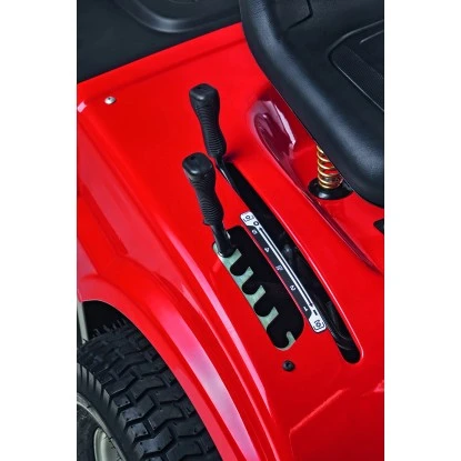 Der Troy-Bilt Rasentraktor Horse 105T-R ist ein Heckauswerfer mit 105 cm Schnittbreite und 240 Liter Grasfangkorb. Er verfĂŒgt ĂŒber eine nominelle Leistung von sagenhaften 12,7 kW und ist mit einem komfortablen Hydrostat-Getriebe ausgestattet, mit dem er sogar im RĂŒckwĂ€rtsgang mĂ€hen kann. Die Schnitthöhe ist in 5 Stufen zwischen 30 und 95 mm einstellbar. Mit seinem Wenderadius von nur 46 cm meistert der Traktor auch schwieriges, enges Terrain wie z. B. Streuobstwiesen.